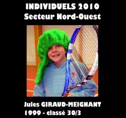 C'est à Fondettes que P'tit Jules, alias Jules Giraud-Meignant, a remporté dimanche 21 mars la finale des Individuels Secteur Nord-Ouest, catégorie 11 ans Garçons. Une finale difficile en 3 sets, après 2 matchs de qualification, dont un contre son copain Victor, pour un Jules qui a su "faire parler son classement". Reste à Jules à acquérir désormais le comportement irréprochable qui va avec cette place de n° 1 du Secteur...