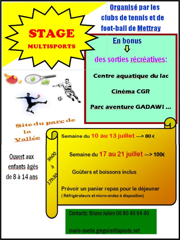 STAGE MULTISPORTS ORGANISE PAR LES CLUBS DE TENNIS ET DE FOOTBALL DE METTRAY