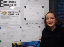 Deuxième Championne de Secteur (Nord-Ouest) à Mettray, mais le suspens n'a pas été insoutenable... 1. parce que 2 Mettrayennes s'affrontaient en finale et 2. parce que Lucie RAGOT (photo) n'a pas fait de cadeaux à sa copine de club Gwénola BERGER. Dans cette catégorie des 10 ans filles, Lucie l'a donc emporté 5/3 5/0 au terme d'un match très sympathique et, il faut le noter, sans qu'à aucun moment aucune des 2 filles ne s'énerve, la palme du bon esprit revenant même à Gwénola, aussi rayonnante après sa défaite... qu'avant de débuter le match. Bravo les minettes ! Nicolas Le Romancer, qui a désormais programmé ses 44 matchs d'Individuels (4 restent à jouer en ce dimanche soir 24/01), a donc achevé 3 des 4 tableaux programmés à Mettray, montant sur la chaise pour arbitrer la finale des 15-16 ans Garçons et attendant d'en faire autant le dimanche 31/01 pour la finale des 12 ans Garçons ? Dans ce tableau des 12 ans, seul Côme FALQUE reste en course, ses copains ayant quasi tous gagné un match avant de s'incliner au 2nd tour. Mais Côme, qui n'a laissé qu'un jeu à ses deux premiers adversaires (et encore, sur conseil de son père !) est bien décidé à venger Antoine, Émilien, Théo, Colin & Jules V. en allant le plus loin possible (3 matchs la semaine prochaine Côme = finale assurée !). Les Individuels se poursuivent dans les autres clubs pour nos autres Mettrayens : Emmanuel, Nicolas, Stévy & Clément toujours en course à St-Cyr, de même que nos trois 2001 engagés (Henry, Donatien & Dino), nos 1999 qui n'ont encore guère joué (Jules GM, Victor, Johan, Aurélien & Luna) et nos grandes filles dont les matchs se déroulent à Luynes (Scarlett, Tiphaine & Marine). Bonne chance à tous...