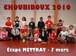 Belle journée (à l'intérieur, ouf !) hier au Moulin Maillet où 15 Choubidoux, âgés de 7 et 8 ans, s'étaient donné rendez-vous, dès 9 heures du matin, pour s'affronter en matchs de divers formats. Honneur tout d'abord aux 11 Mettrayens "mobilisés" : Baptiste, Noé, Noam, Raphaël, Aubin, Matéo, Perrine, Hugo, Coyote, Thomas et Clément. À cette liste se sont ajoutés Côme, en provenance de St-Cyr, Julie du TCJ, Pauline de Montbazon et Ian de St-Avertin. cf. http://www.lanouvellerepublique.fr/dossiers/journal/index.php?dep=37&num=1575935 Après avoir participé à 4 ateliers (parcours, chamboule-tout, basket, hockey) mis en place afin que les enfants s'échauffent et fassent connaissance, les 15 participants sont répartis dans 4 poules. Toute la matinée, tout le monde joue contre tout le monde à l'intérieur de sa poule, avec, au final, 8 qualifiés pour le Tableau Principal. Pour faire baisser la tension de ces premiers matchs, un concours de cibles avec bonbons à gagner est organisé. Chacun gagne un petit lot, plus ou moins rapidement ! Pause pique-nique, atelier dessins, mais très vite, les Choubidoux réinvestissent les terrains (les organisateurs ont à peine le temps de manger !). L'après-midi reprend donc avec les 4 quarts de finale du Tableau : Côme bat Thomas, Ian bat Pauline, Clément bat Noé et Baptiste bat Julie... Les matchs se déroulent alors sur terrain de 18 m pendant que, sur le court d'à-côté, les 7 autres compétiteurs se rencontrent à nouveau les uns les autres. En 1/2 finale, Côme bat Ian et Baptiste bat Clément. Sur le court n° 2, Matéo gagne tous ses matchs ; c'est maintenant l'heure des mini-tournantes. Enfin arrive la grande finale avec juges de ligne et ramasseurs de balles : devant un public fourni (ce qui a sûrement un peu déstabilisé Baptiste), Côme fait valoir son expérience et, après une bataille de services, l'emporte 4 jeux à 1. Les 15 participants sont alors récompensés ; Pauline & Ian reçoivent les prix de joueurs les plus "Fair-Play" du tournoi et Clément souffle ses 8 bougies devant la foule des parents, à laquelle s'est ajoutée Michel Martin & Éric Pernon du Comité. C'est enfin l'heure de trinquer à la santé des Choubidoux... puis celle de ranger le club, qui a légèrement souffert de la tornade qui a soufflé au Moulin Maillet (à l'intérieur des locaux !) pendant toute la journée. Un grand merci à toutes les personnes qui ont permis à cette journée d'exister : — Patrice, le Président, au four et au moulin — Jacques, notre photographe, toujours très investi — Mag & Marie-No, très efficaces, aussi bien à l'intendance qu'à l'arbitrage — Nicolas & Olivier, qui nous ont montré leurs talents de "jeunes" arbitres officiels — Nicolas, Zoé & Louis, jeunes du club, qui nous ont donné la main tout au long de la journée — les parents Perrot, Sauzeau, Colas, Détré... pour ne citer qu'eux, dont nous avons apprécié la présence et l'investissement à nos côtés — sans oublier Emmanuel venu nous annoncer sa victoire en 1/2 finale des Individuels contre un 15/5... — et Théo Bernier arrivé au bon moment pour faire le ramasseur de balles. Prochaine Étape des Choubidoux : LE MERCREDI 24 MARS AU TCJ (cf. fichier PDF pour les Étapes suivantes) Photos à voir dans les Galeries de Photos.