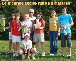 Très beau WE sur les terrains de La Béchellerie (St-Cyr) où se déroulait le traditionnel Trophée Cécile-Mauté : 8 équipes, composées chacune de 6 joueurs (un poussin, une poussine, un benjamin, une benjamine, un minime garçon et une minime fille), s'affrontent, dans un climat convivial (il s'agit d'une compétition amicale !) en 1/4, 1/2 puis finales, pour remporter le Trophée. Rappelons que cette manifestation existe depuis 1999, année du décès accidentel de la petite Cécile Mauté, promise à un bel avenir tennistique et que chaque année, ses parents ainsi que sa sœur Céline (sans oublier Jean-Baptise, Jade & Gabriel !) s'occupent de l'organisation du tournoi, des arbitrages des matchs jusqu'à la recherche de multiples cadeaux à offrir aux participants. Les équipes sont composées de joueurs n'ayant jamais fait de compétition ou commençant à peine les tournois. À Mettray, c'est ainsi qu'ont été sélectionnés Lucie Ragot & Henry Guillemaut chez les poussins, Luna Dormet & Côme Falque chez les benjamins et Marion Caillaud & Paul Dorin chez les minimes. 4 de nos joueurs ont atteint les finales... les remportant même au passage ! Paul a chuté en 1/2 finale le dimanche matin et Lucie en 1/4 le samedi après-midi. Mais somme il s'agit d'un challenge, après décompte des points, Mettray finit donc en tête devant St-Cyr et Larçay. Très jolie remise des prix sur les coups de 17 h au club de St-Cyr, avec — je le répète — de nombreux lots, coupes et fleurs distribués aux participants, remise des prix suivie du pot de l'amitié, comme il se doit ! Merci aux parents Mettrayens d'avoir accompagné le club dans cette compétition ; bravo à tous les participants, quel que soit le stade de la compétition atteint... Un compliment tout particulier à Côme & Luna qui ont montré un réel esprit d'équipe (pas étonnant de la part de notre Zinedine !) pendant les finales du dimanche après-midi. Et toute notre reconnaissance aux parents Mauté ainsi qu'au couple Péron pour cette entreprise, si particulière, menée de main de maître.