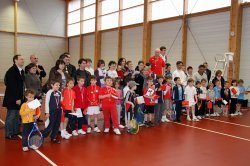32 jeunes joueurs de tennis on foulé dimanche 27 mars 2011 les courts du Moulin Maillet pour la 2ème étape des Choubidoux. 3 filles et 29 garçons se sont donc affrontés sur des matchs en format réduit dès 9h du matin (et avec une heure de moins de sommeil). Répartis en 8 poules de 4, les Choubidoux ont joués ensemble dans la bonne humeur. Pendant que les uns jouaient sur les 4 mini-terrains, leurs camarades de jeu tapaient quelques balles ou s'échauffaient autour d'un match de hockey. En même temps, quelques parents attentifs et courageux profitaient de la journée avec le café d'accueil et les viennoiseries servies par Karine et Stéphanie. Et ils n'hésitaient pas à encourager leurs enfants quand ceux-ci jouaient. Durant toute la matinée, les matchs se sont donc enchaînés avec une équipe arbitrale composée de Patrice, Nicolas, Olivier, Louis, Colin, Pierre-Emmanuel ainsi que d'Olivier Delaneau, un papa dont l'aide fut précieuse. La pause déjeuner est alors venue à point nommé vers 12h30. Chaque choubidoux avait son pique-nique. Tous ensemble ont pris leur repas au vestiaire... A l'extérieur, quelques goûtes ont empêché les plus téméraires à investir les espaces verts. Puis vers 14h, reprise de la compétition avec les 8 meilleurs joueurs de la matinée. Les échanges ont commencé a devenir plus intenses et plus longs. Du très beau spectacle ! Et avant la finale, notre traditionnel jeu des cibles a fait des heureux, notamment le petit Hugo qui a touché le pingouin et récolté la grande tablette de Twix... La finale des Choubidoux a alors débuté vers 15h. Parents et choubidoux se sont réunis pour encourager les 2 finalistes de la journée : d'un côté Romain Delaneau (de Monnaie) et de l'autre Romain Levieuge (de l'ASPTT). L'arbitre de la partie était notre tout nouvel A1, Hugo-Rémi, assisté de juges de lignes : Colin, Pierre-Emmanuel et Luna. La victoire est alors revenue à Romain Levieuge sur le score de 4-0 4-1. La remise des prix a suivi avec la photo finale de notre photographe attitré Jacques. Chaque choubidoux a alors reçu sa médaille et son beau diplôme, très mérité, des mains de Jean-Philippe avec une petite surprise pour chacun. Un grand merci aux parents pour leur soutien. L'ensemble du bureau était ravi de cette très belle journée... Et n'oubliez pas, les Choubidoux continuent leur parcour. Prochaines étapes : Avoine et Descartes. Classement final de cette étape Mettrayenne : 1. Romain Levieuge (ASPTT Tours) 2. Romain Delaneau (Monnaie) 3. Lucas Schurdevin (TC Tours) 4. Paul Maire (RSSC) 5. Michal Baran (TC Tours) 6. Aubin Charley (Mettray) 7. Rémi Lemoine (Notre Dame d'Oé) 8. Maia Chabanel (Mettray) Félix Charley (Mettray) Margo Hoareau (Mettray) Sasha Hoareau (Mettray) Baptiste Richard (Montlouis) Alexandre Azouaou (RSSC) Alexis Fournier (Montlouis) Jules Rousseau (Chanceaux) Quentin Caron (Chanceaux) Noam Cosson (Mettray) Aymeric Gravelaine (Chanceaux) Arthur Chanal (RSSC) Théo Ladois (Montlouis) Stanislas Levêque (ASPTT Tours) Louis Perrot (Mettray) Baptiste Valaize (Mettray) Antoine Julien (Mettray) Hugo Perrin (TC Jocondien) Raphaël Faugeras (Mettray) Rayan Al Kassar (TC Tours) Killian Crinière (Notre Dame d'Oé) Enzo Dreano (Montlouis) Alessio Mazella (Notre Dame d'Oé) Athénaïs Le Bellour (Notre Dame d'Oé) Matthias Breux (Mettray)