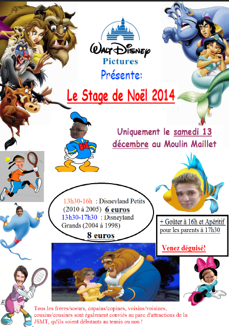 Cette année, le thème de ce stage est DISNEY. Tous les déguisements de Mickey/Minnie, Donald/Daisy, Robin des Bois/Capitaine Crochet, Dingo, Pluto, Aladdin, Roi Lion, Petite Sirène, Winnie l'Ourson, Blanche-Neige et ses 7 nains, etc etc... seront donc accueillis à leur juste valeur ! Les plus beaux déguisements seront récompensés !
