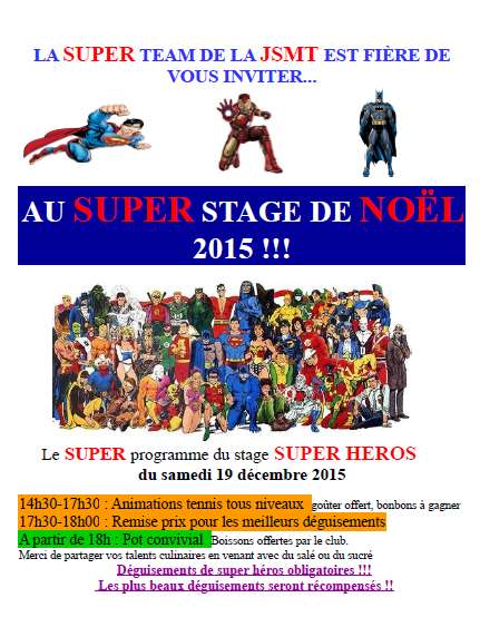 La JSMT organise son traditionnel stage de noël le samedi 19 décembre 2015.